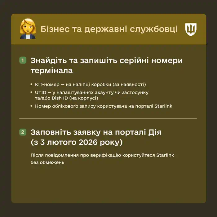 Міністр запевнив, що процес реєстрації терміналів Starlink для українців буде максимально простим. Для фізичних осіб достатньо одного візиту до найближчого ЦНАПу.